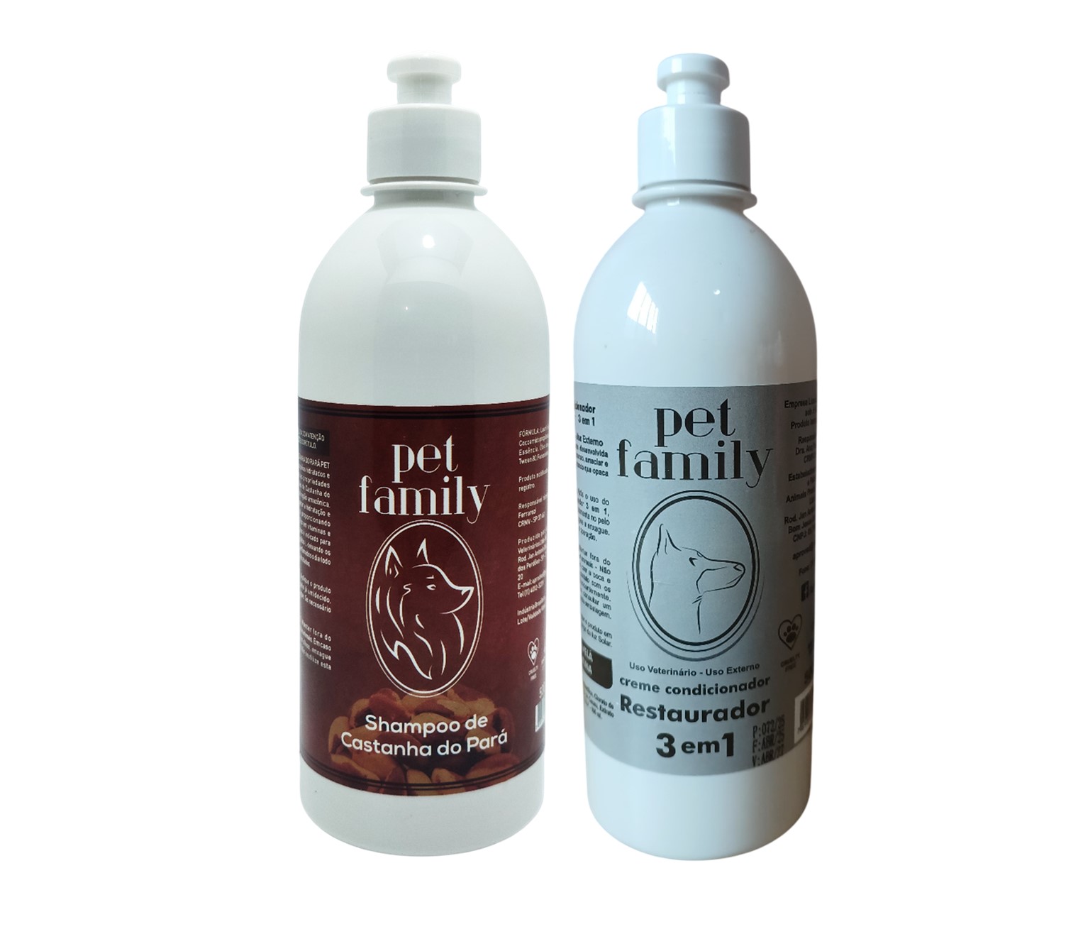 O Shampoo Pet Family Castanha do Pará para Cães e Gatos é um produto indicado para cães e gatos de todos os portes e todas as idades. Conta com óleo de castanha do Pará, responsável por ajudar a recuperar a hidratação e nutrição dos fios, promovendo brilho e maciez.