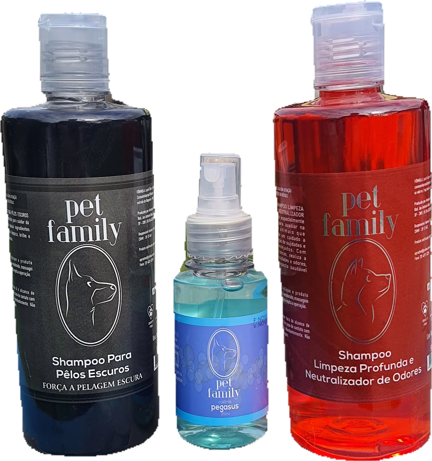 combinação 1 shampoo de lavagem poderoso com 1 shampoo específico para pelagem escura pois, possui extrato de nogueira. Ainda tem 1 colônia masculina deliciosa.